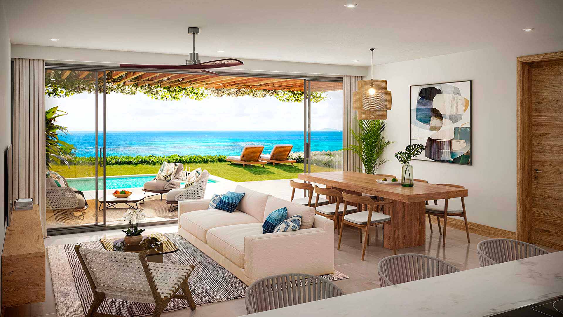 Les appartements en rez-de-jardin offrent 203 m² de confort, avec trois chambres, un vaste séjour, une cuisine haut de gamme et une grande terrasse couverte. Prolongés par un jardin privé (entre 62 et 181 m² en fonction de l’emplacement) et une piscine, ils invitent à la détente dans un cadre élégant face à la plage.